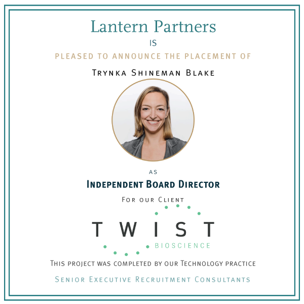 Twist Bioscience retained Lantern Partners to identify an independent board director with expertise accelerating growth within a digitally native B2B environment. We are pleased to announce the appointment of Trynka Shineman Blake to the board, a seasoned public board member with deep experience scaling B2B e-commerce capabilities.