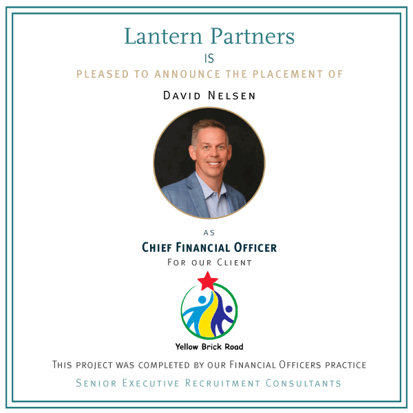 Yellow Brick Road Early Childhood Development Center, a portfolio company of Avathon Capital, retained Lantern Partners to recruit their Chief Financial Officer. We are pleased to announce the appointment of David Nelsen to this role.